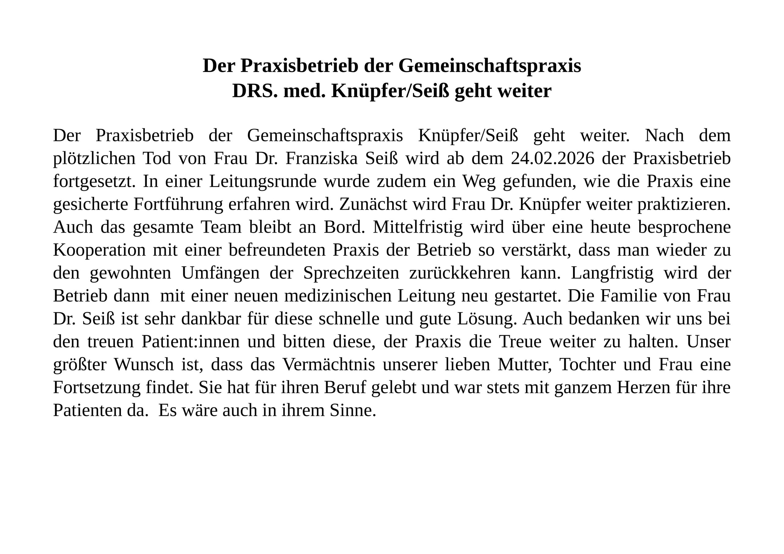 Gemeinschaftspraxis Dr. Knüpfer / Dr. Seiß